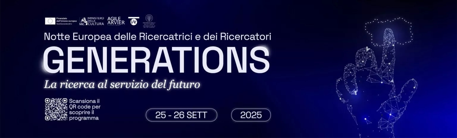 L’edizione di quest’anno della Notte europea delle ricercatrici e dei ricercatori in Valle d’Aosta fa tappa in Aosta, alla Cascina Montfleury dell’Institut Agricole Régional e al Polo Universitario della Valle d’Aosta, e nel Comune di Arvier. La manifestazione, organizzata dall’Institut Agricole Régional in collaborazione con l’Università della Valle d’Aosta, si inserisce all’interno delle attività da realizzare nell’ambito del progetto “Agile Arvier: La Cultura del Cambiamento”.