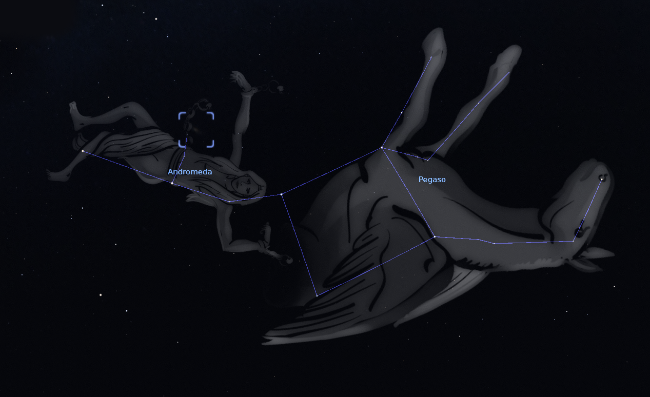 Benché Markab compaia come la stella Alpha Pegasi nella classificazione di Bayer, in realtà la stella più brillante di Pegaso è Enif. Invece Alpheratz, pur essendo un vertice dell’asterismo (cioè un disegno fatto con le stelle che di per sé non è una costellazione riconosciuta dall’IAU) del Quadrato di Pegaso, è una stella formalmente della costellazione di Andromeda, la giovane principessa figlia di Cassiopea e Cefeo. La costellazione ospita l’oggetto più lontano percepibile a occhio nudo: la galassia di Andromeda, nota anche come M31, lontana ben 2,5 milioni di anni luce. Per notarla senza strumenti, va da sé che serve una notte serena, senza luna, un cielo buio come lo Starlight Stellar Park di Saint-Barthélemy e… una buona vista! Al telescopio mostra il suo nucleo, che appare come un batuffolo luminoso, ma in realtà è composto da miliardi di stelle visualmente non distinguibili una dall’altra per via della grande distanza.