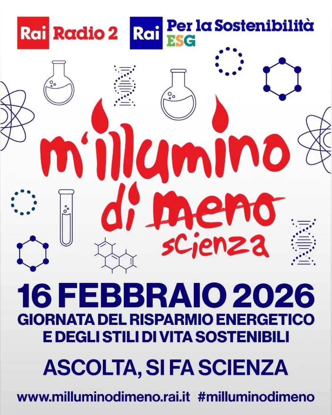 La 22esima campagna di M’illumino di meno è partita venerdì 16 gennaio con una spettacolare diretta radiofonica dal CERN di Ginevra, all’interno dell’esperimento LHCb, e si protrarrà per un mese fino al 16 febbraio. Infatti quest’anno M’illumino di meno diventa M’illumino di scienza per sottolineare il contributo di scienziate e scienziati nell’offrire soluzioni intelligenti per la sostenibilità ambientale.